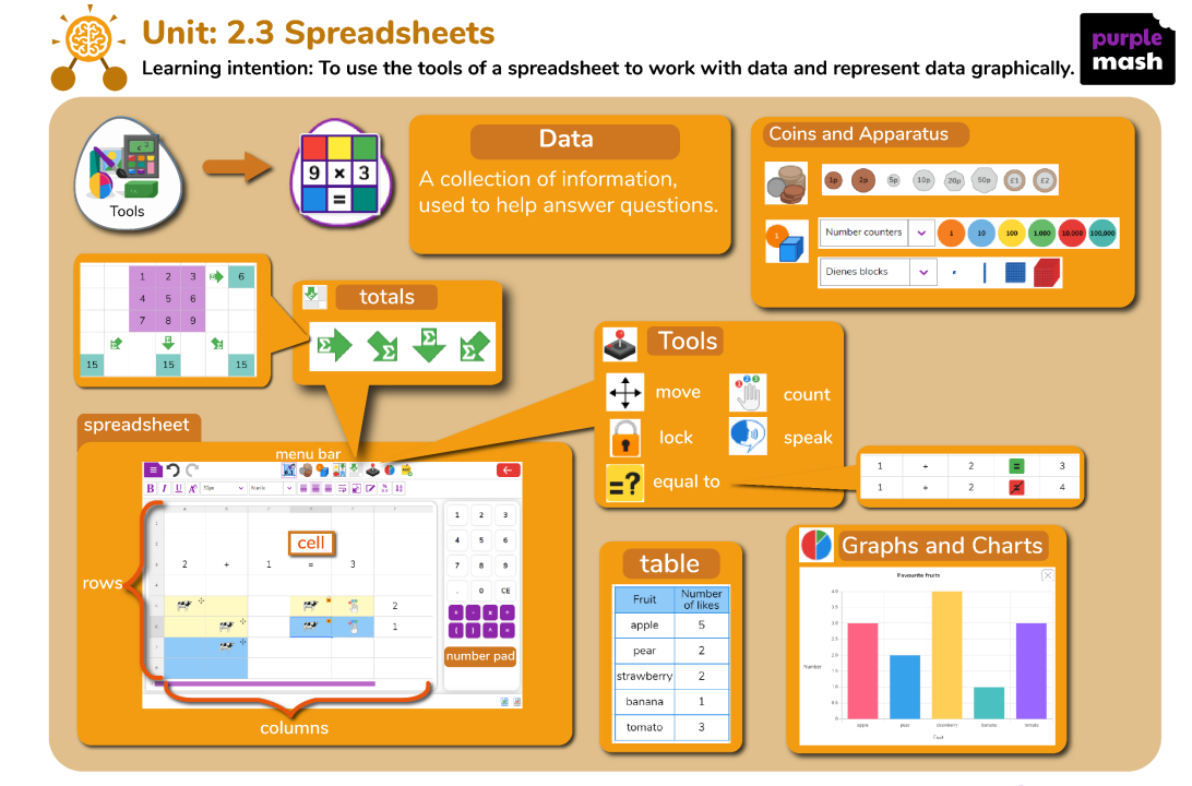 The children's topic will be all about spreadsheets. They will use the tools of a spreadsheet to work with data.