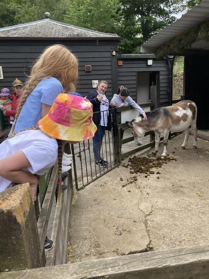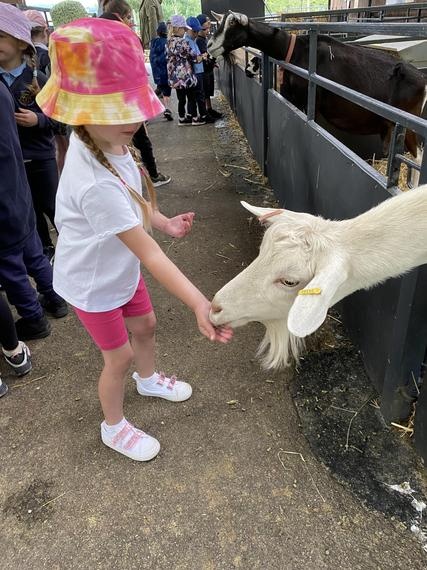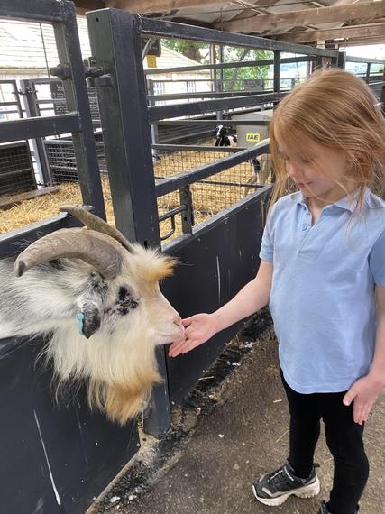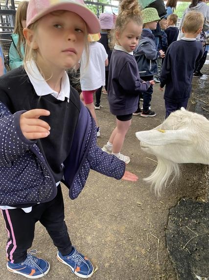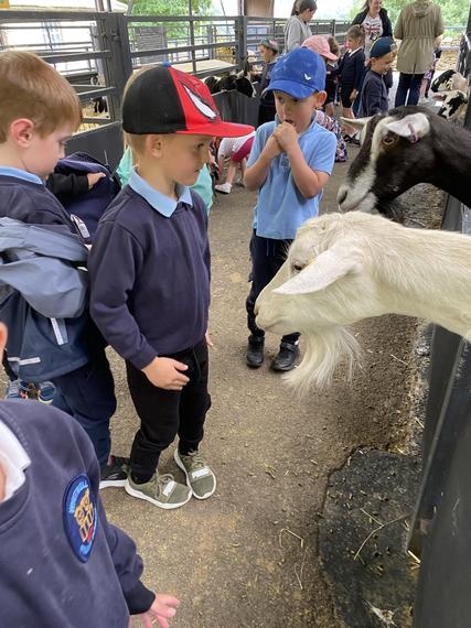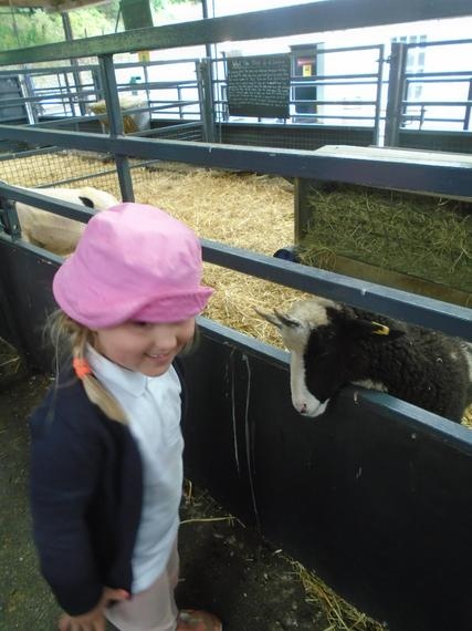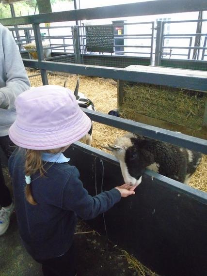 Looking at the new born piglets and feeding the goats.